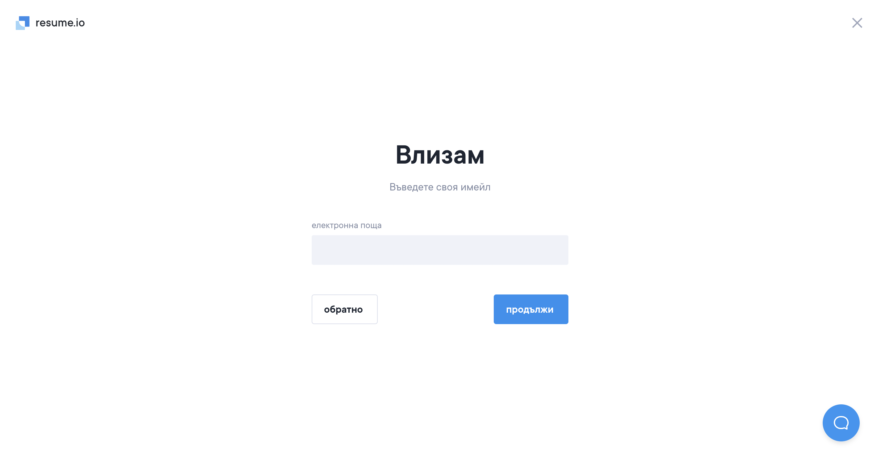 - Ако искаш влезеш в някой от местните ни уебсайтове, но първоначално си се регистрирал/а в Resume.io, ще забележиш, че при опит за влизане страницата те препраща към Resume.io. Необходимо е да използваш друг имейл адрес за влизане в местния ни сайт. В същото време тук можеш да научиш повече за избора на език в CVapp.bg.